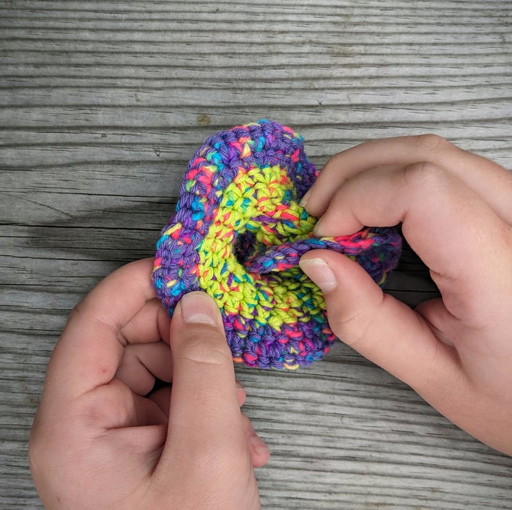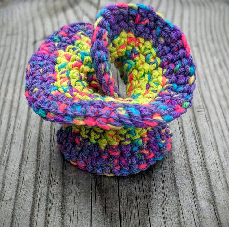 These fidgets are never ending! Hold the outer circle in one hand and use the other to pull up from the middle - it just keeps coming. Silent and satisfying, this version is made from a mix of cotton and acrylic yarns offering a firmer texture and resistance. See it in action here: https://tinyurl.com/y2x24nve