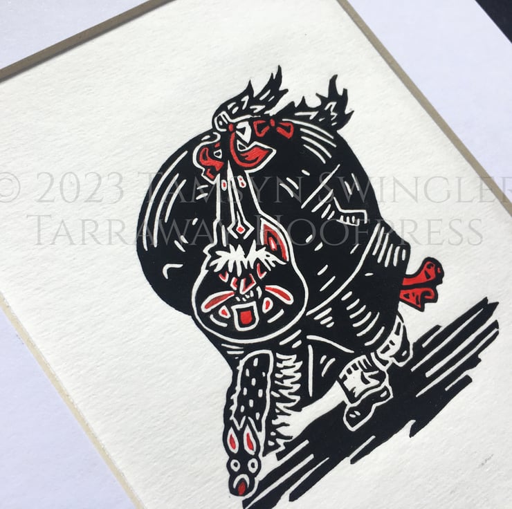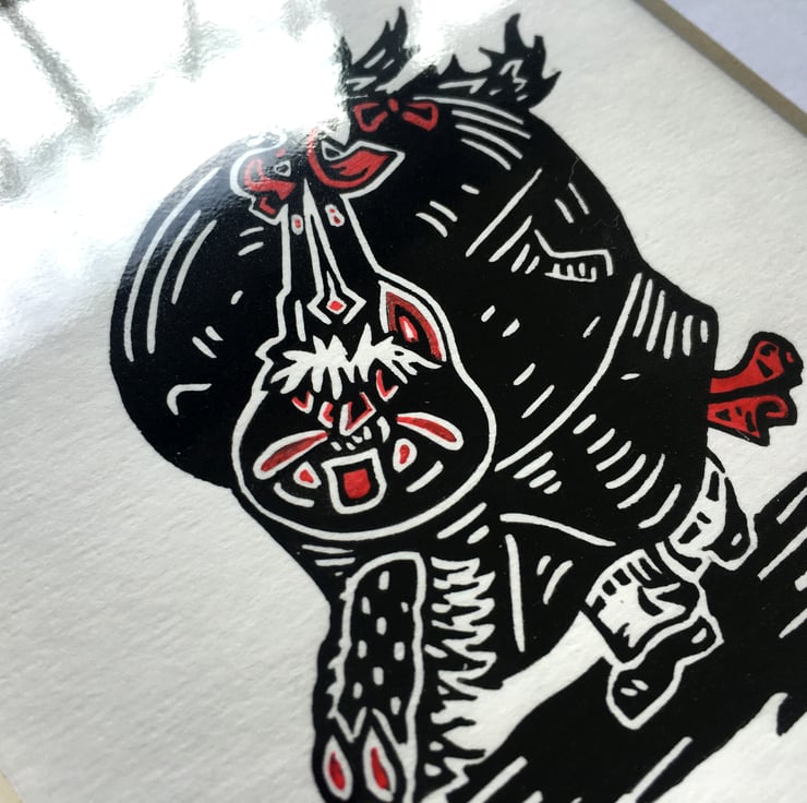 Wee Oss - Red Miniature Padstow Old Oss Lino Print - Limited Edition