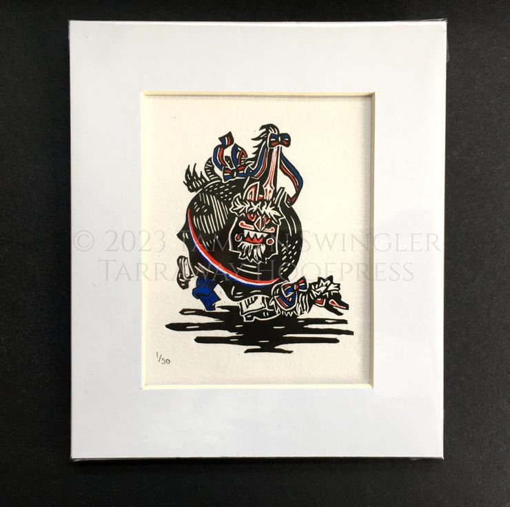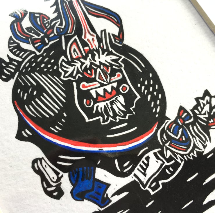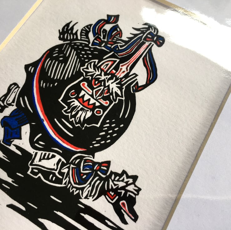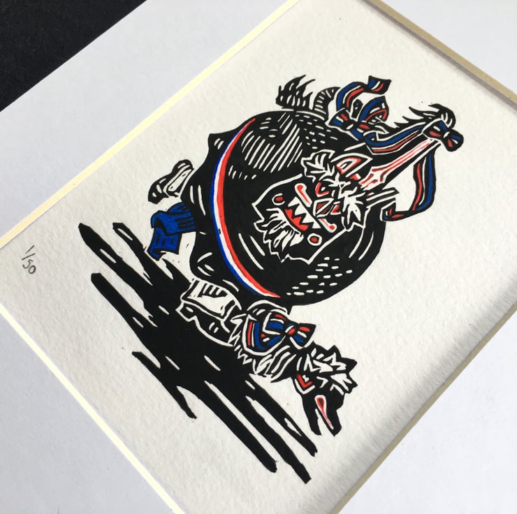Wee Oss - Blue - Miniature Padstow Peace Oss Lino Print - Limited Edition