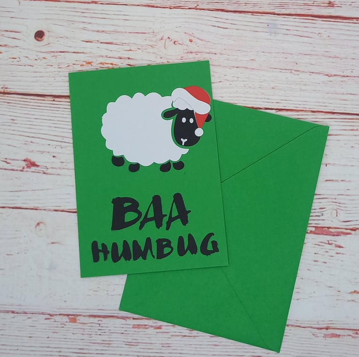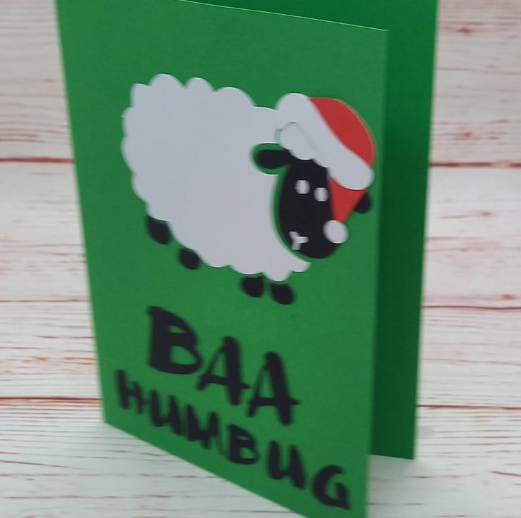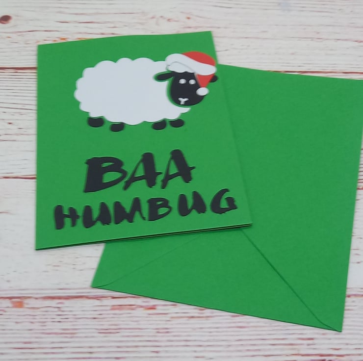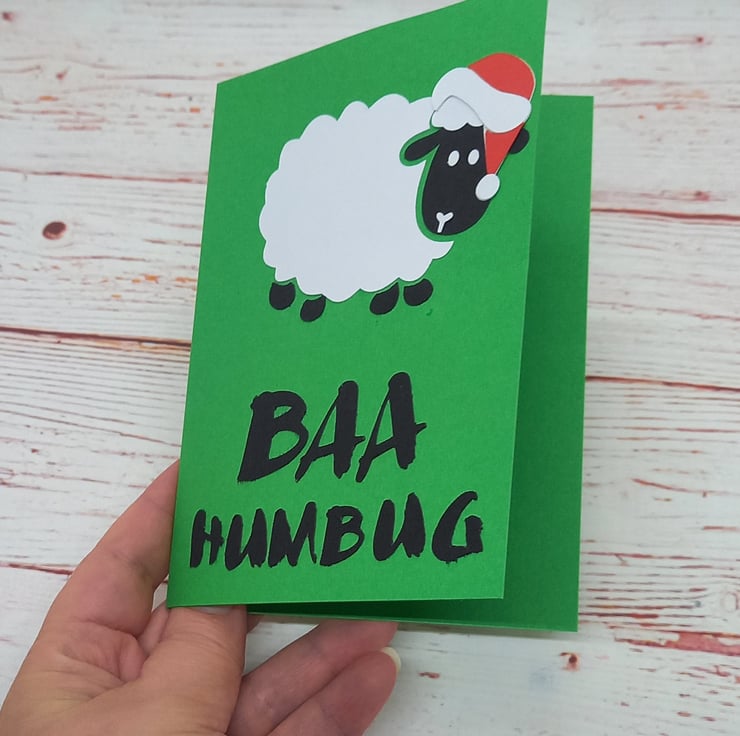 Featuring a sheep cut from card stock and the simple yet funny message 'Baa Humbug' you can be certain to raise a smile with this card.