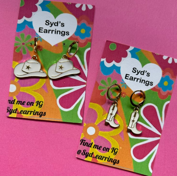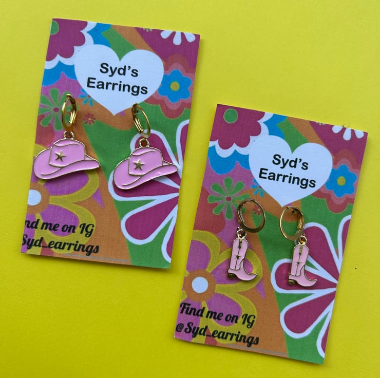 Our enamel cowboy hat and boot hoop earrings are a cute and fun pair to add to any earrings collection, they’re light which makes them comfortable to wear for longer periods. Our cowboy boot and hat earrings also make the perfect gift for a fellow cow lover or yourself!