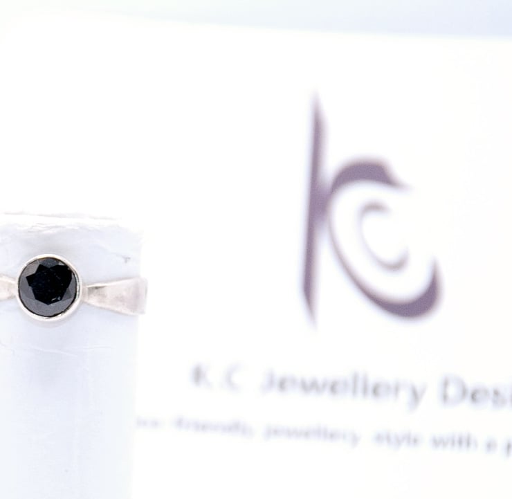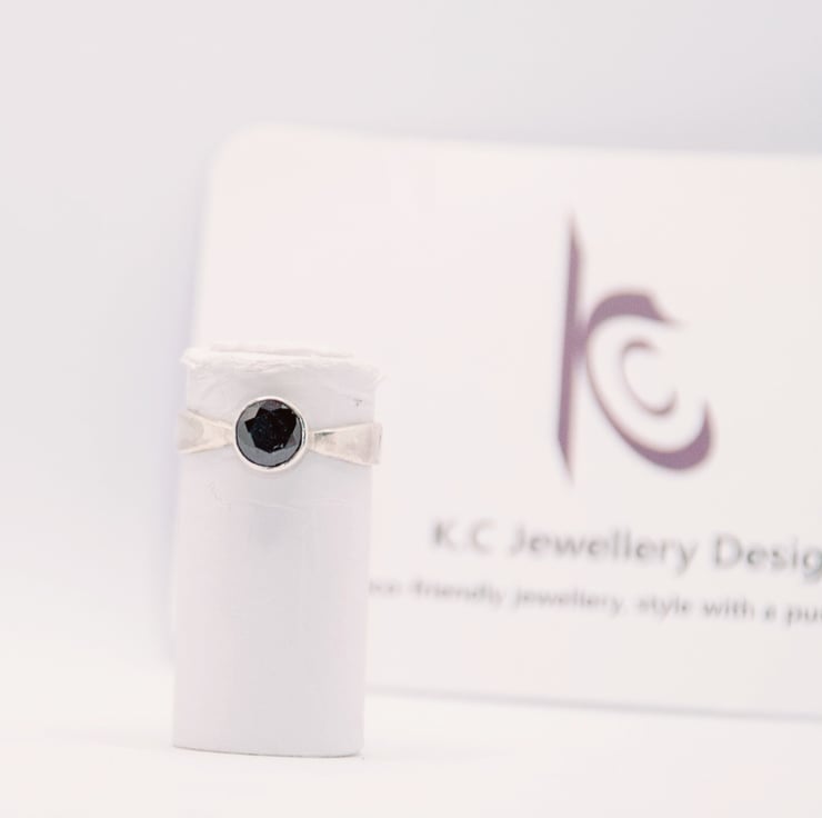 Handmade Eco sterling silver solitaire ring. 6mm black cubic zirconia stone.