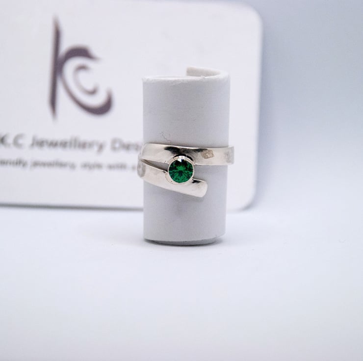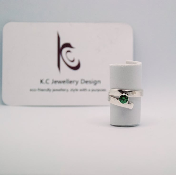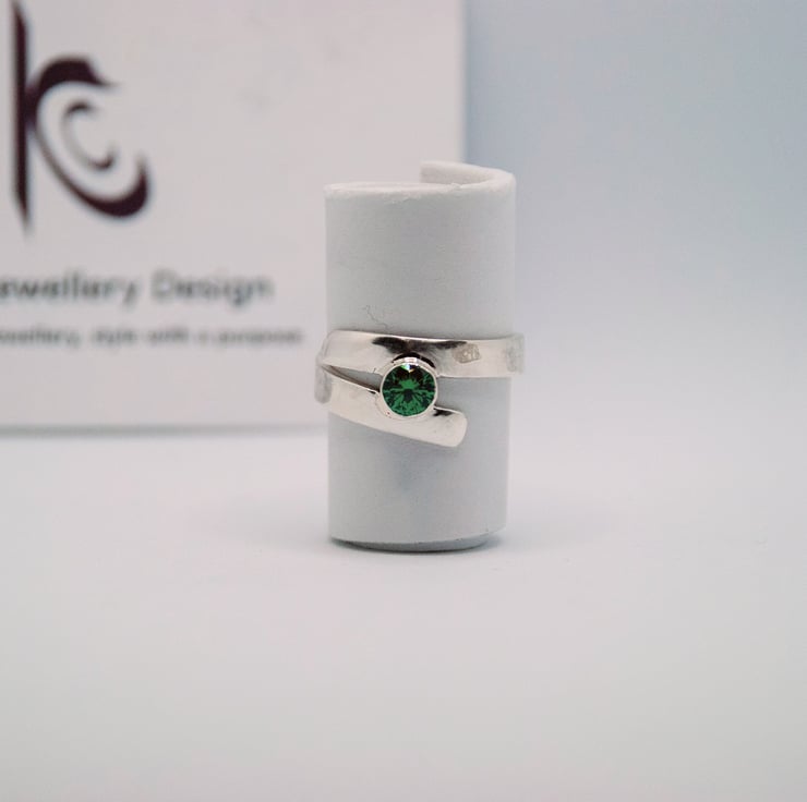 Handmade bold, statement ring. Eco silver band, with 5mm Teal-Green cubic zirconia.