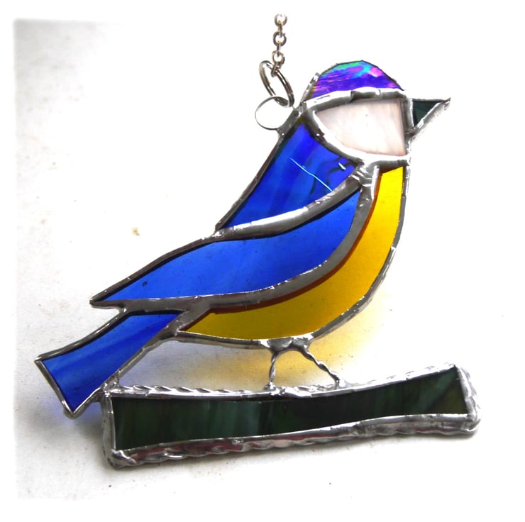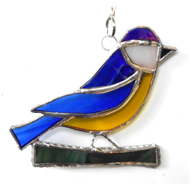 This is a very sweet little Blue Tit. I have some nesting in the garden and they are so very cute I just had to make a glass version as I feel rather honoured that they have chosen my garden for their home. it may be they like the food I provide !.