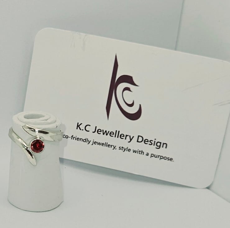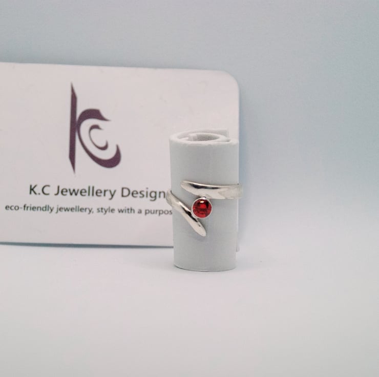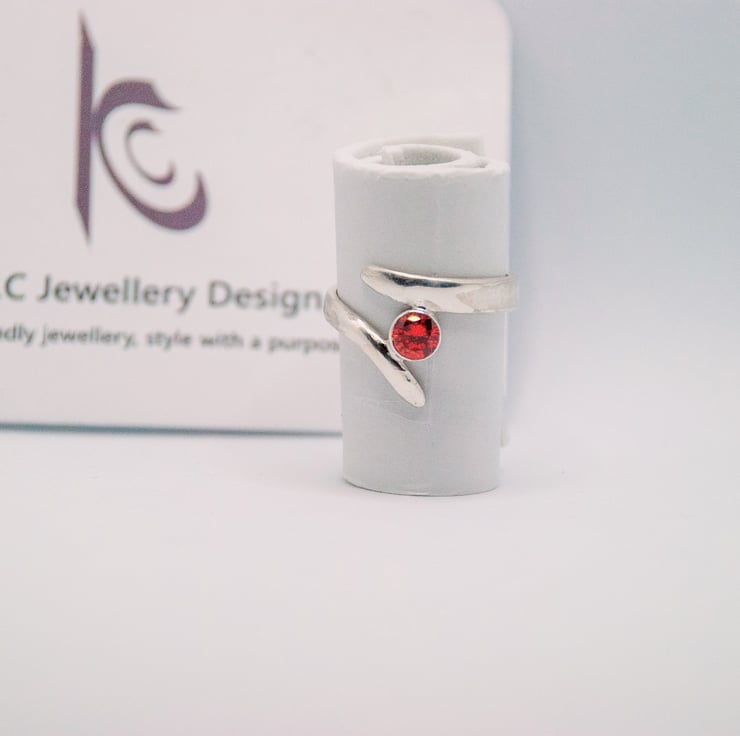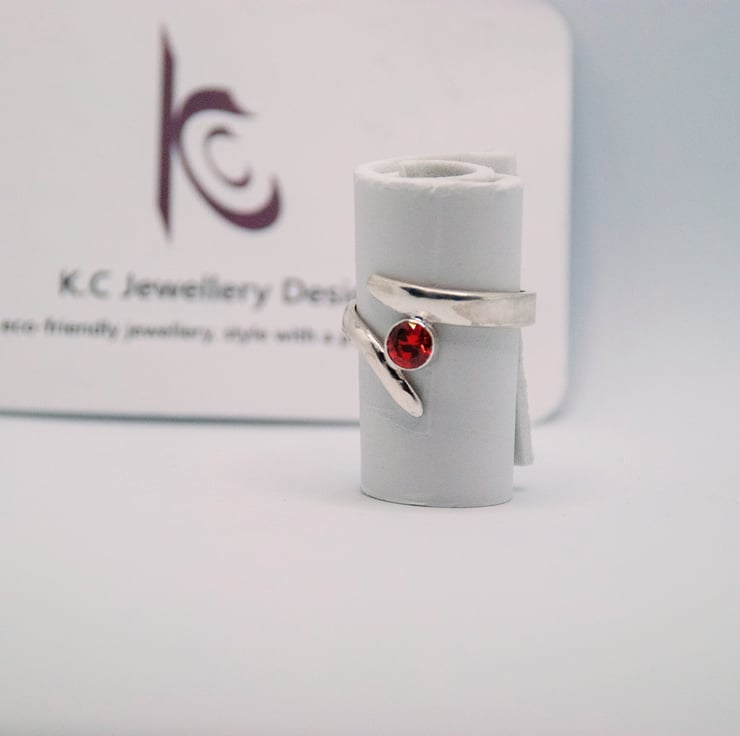 Handmade bold, Eco silver, statement ring.5mm Red cubic zirconia.