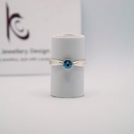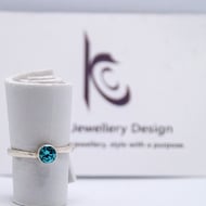 Handmade Eco sterling silver twist pendant, 5mm Aqua blue cubic zirconia. 18" Eco sterling Silver chain.