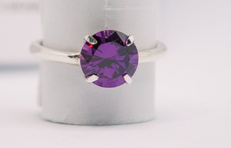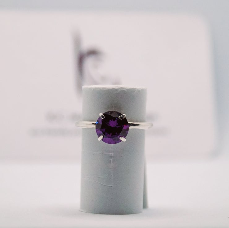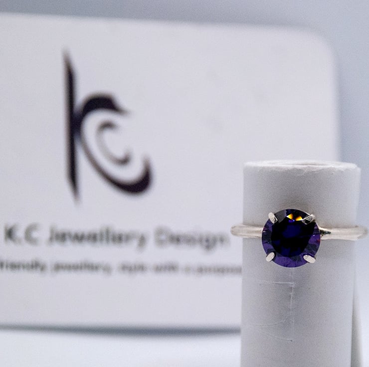 Handmade Eco silver statement ring. 10mm purple cubic zirconia (basket setting)