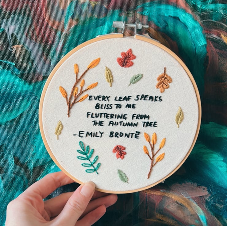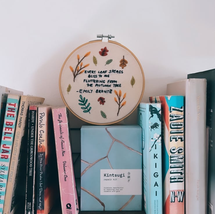 An autumn inspired embroidery hoop for book lovers.