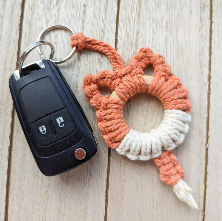 Meet your new BFF (Best Friend Fox) – the Macrame Fox Keychain! Stylish, unique, and measuring 6cm wide and 10cm from ears to tail.