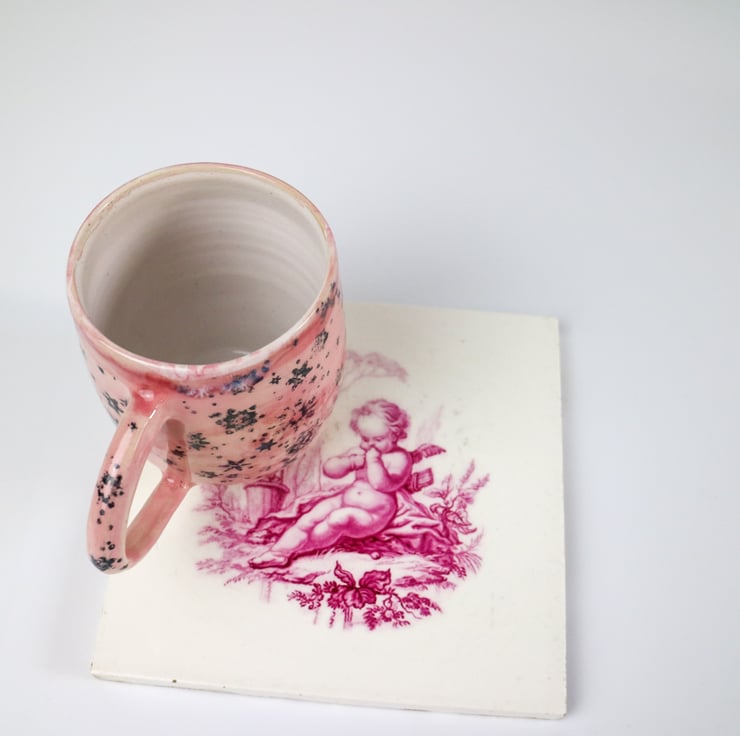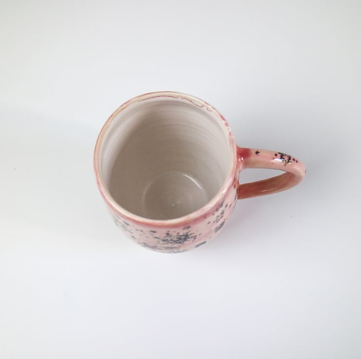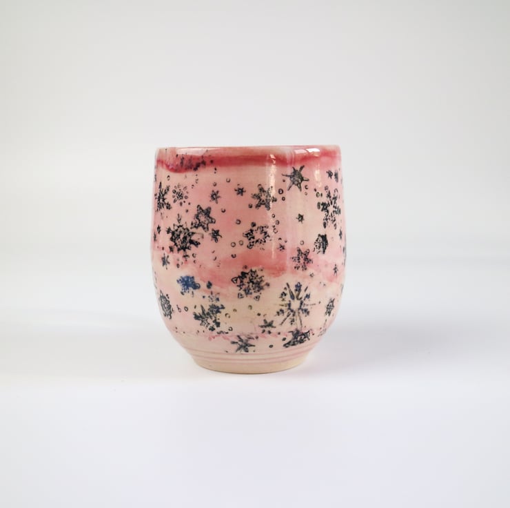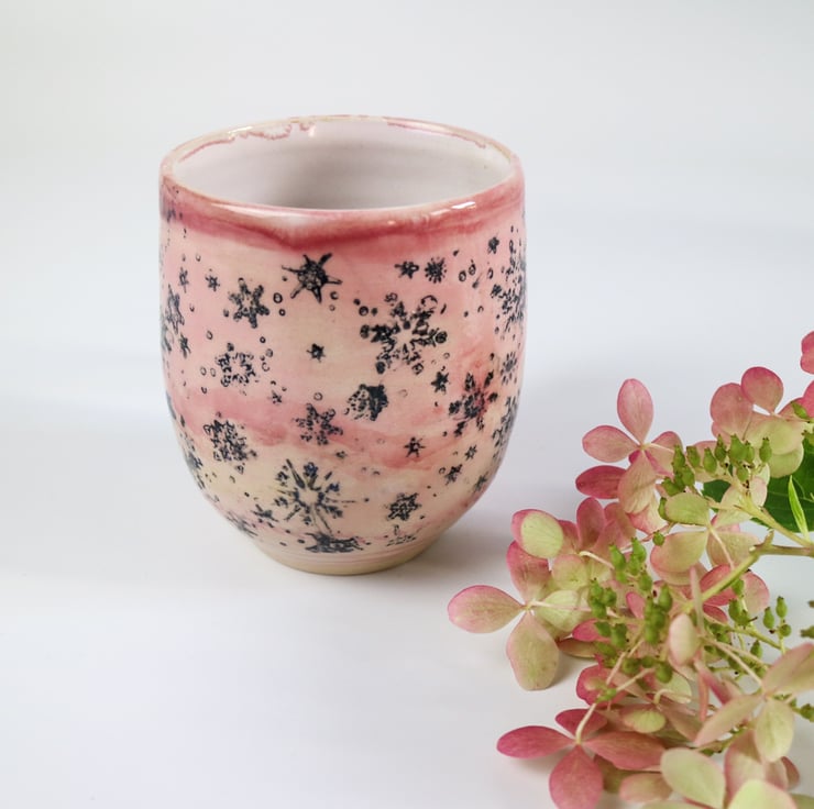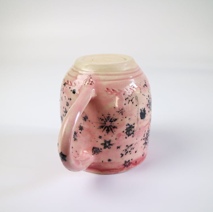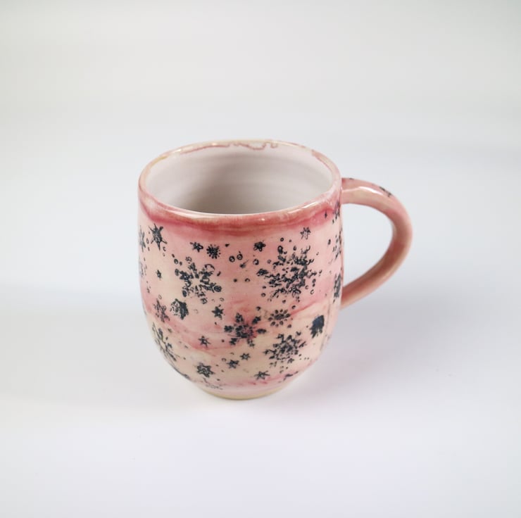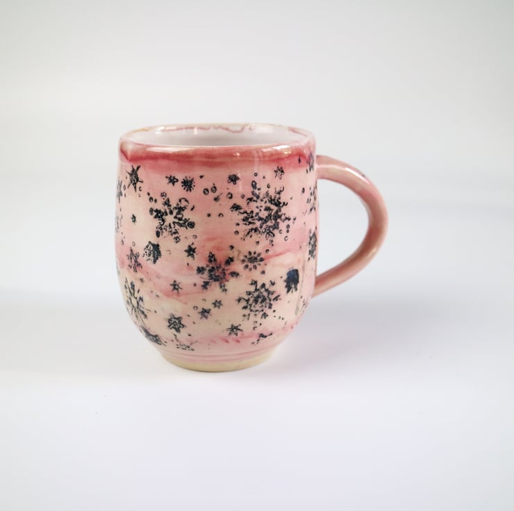 Featuring a snowflake design this stoneware mug glazed in pale pink.