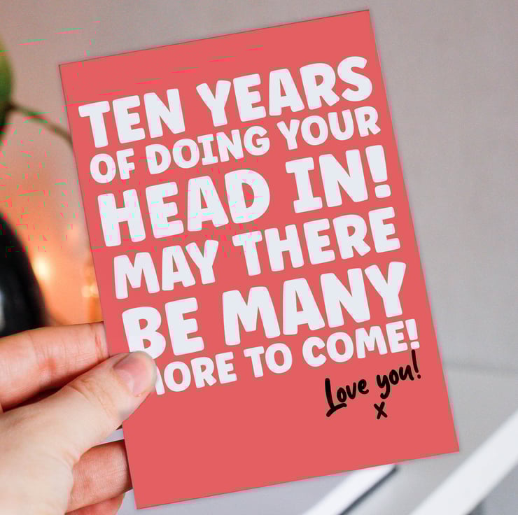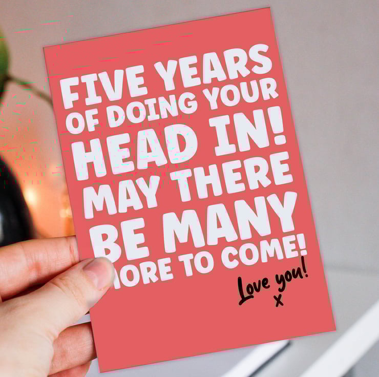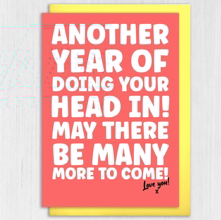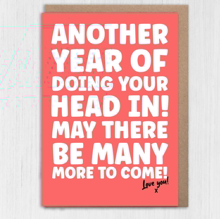 Another year of doing your head in, funny anniversary card for husband, wife, boyfriend, girlfriend, partner (Size A6/A5/A4)