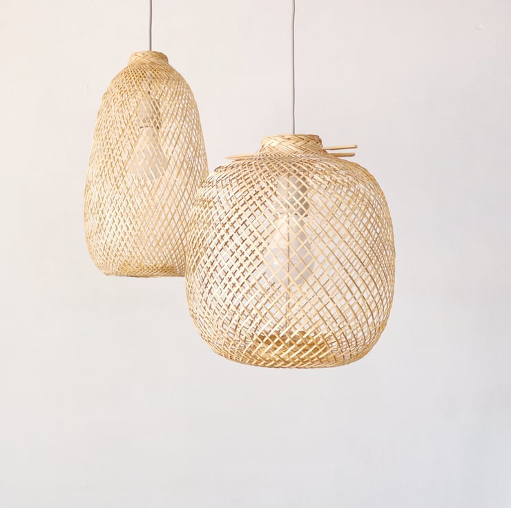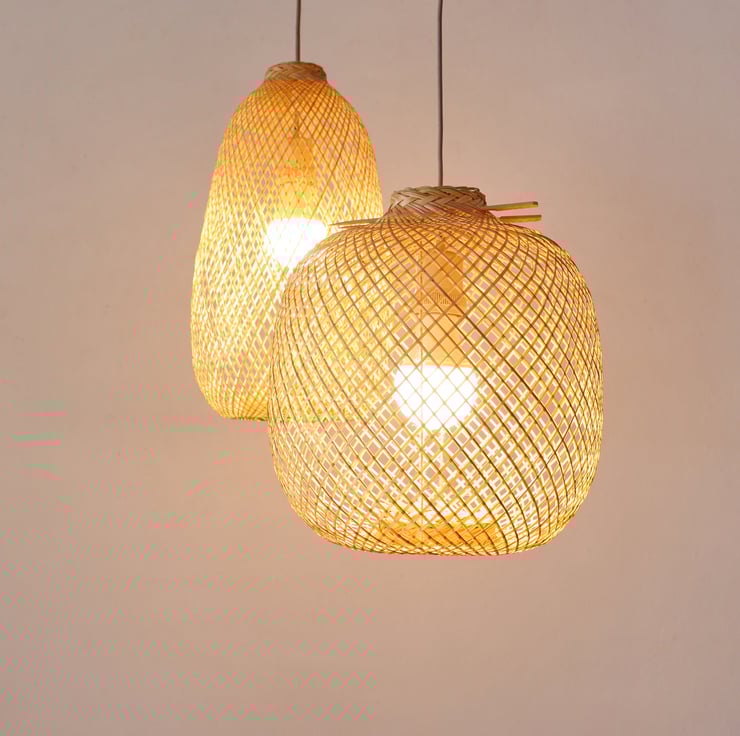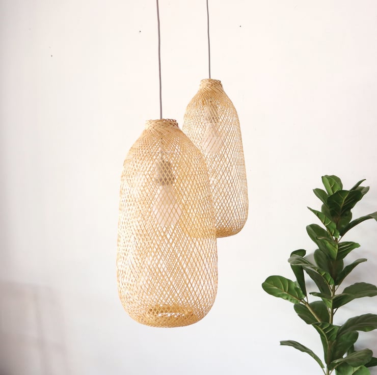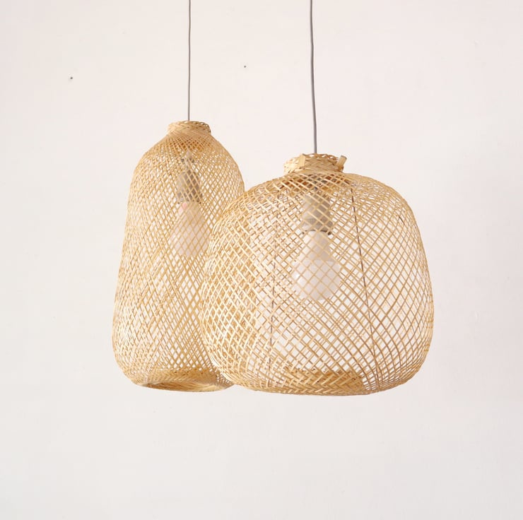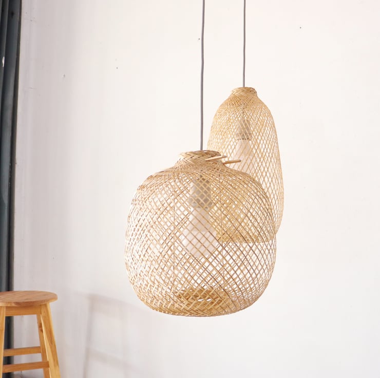 Bamboo pendant light, Wooden Pendant Light shade, Wicker Lampshade, Flexible pendant light, Light Fixture, Light THAIHOME