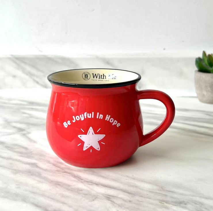 Red - Be Joyful In Hope Family Mug inspired by Romans 12:12 Be joyful in hope, patient in affliction, faithful in prayer.