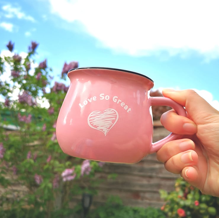The colourful family mugs have two sizes available on our website. You can easily make them a matching set for the family or as a lovely gift.