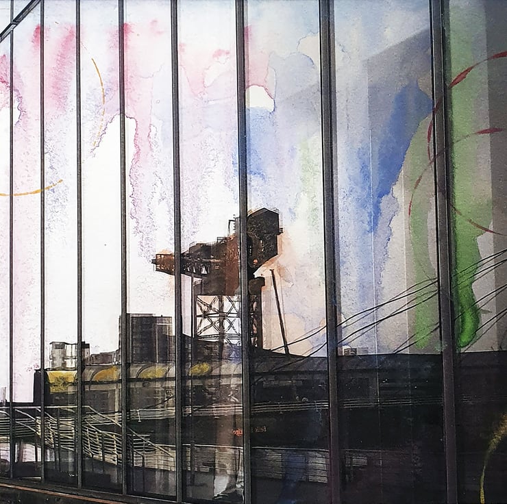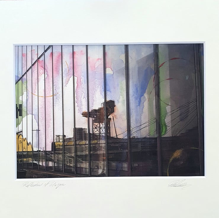 Reflections of Glasgow, photograph with watercolour overlay . 5 x 7inch print mounted in a 9 x 7inch ice white acid free matt ready to frame. Your print will be numbered up to 250. Display these fine art photographs in your living / office space. Capture the essence of Glasgow today and embrace the beauty of its remarkable buildings through my captivating limited editions of 250 fine art Archival prints ready to frame in acid free ice white mounts.