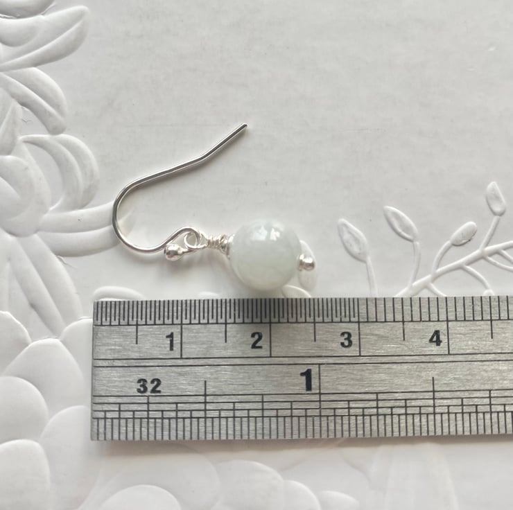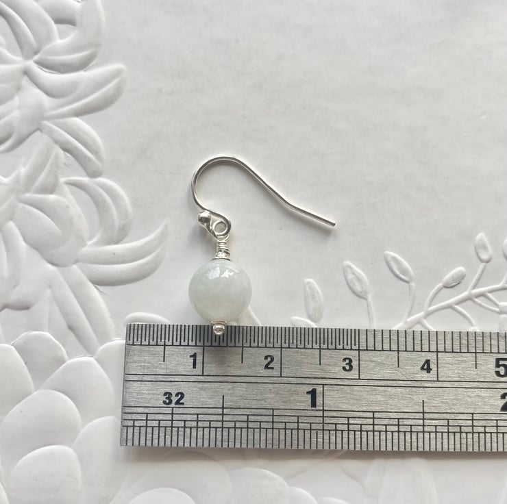 The Jadeite beads measure approximately 0.8cm x 0.8cm and the total length of each earring is approximately 2.5cm.