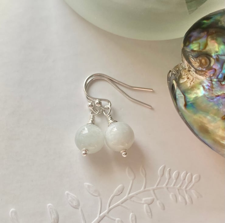 I have used Grade A natural Burmese Jade beads and 925 sterling silver findings to create these lovely earrings. The Jade is very pale green in colour and I have finished the earrings with sterling silver ear hooks.