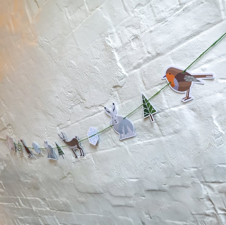 The string supplied is approximately 2 metres long and the animals, snowflakes and trees are double sided so you can display it in a window and enjoy it both inside and out. You can put the elements on the string in any order you like.