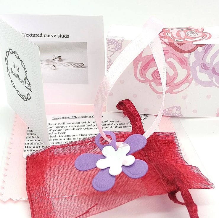 Arriving in a gift pouch wrapped in carded gift wrap and tied with ribbon, a product card and silver polish cloth is also included making a ready to give gift.