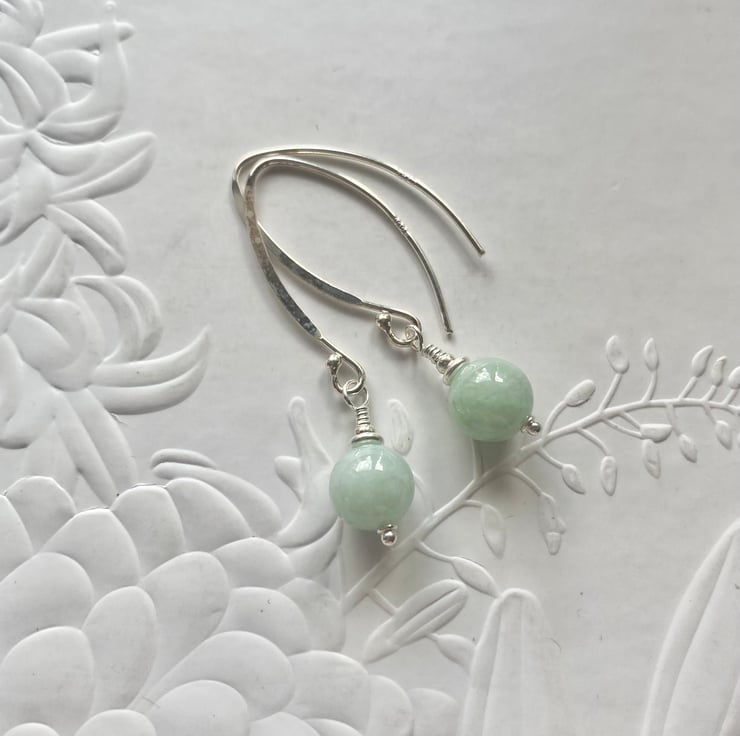 Beautiful handmade Jade earrings featuring Grade A natural Burmese light green Jadeite round beads and 925 sterling silver findings. I have finished the earrings with sterling silver long ear wires giving them lots of movement.
