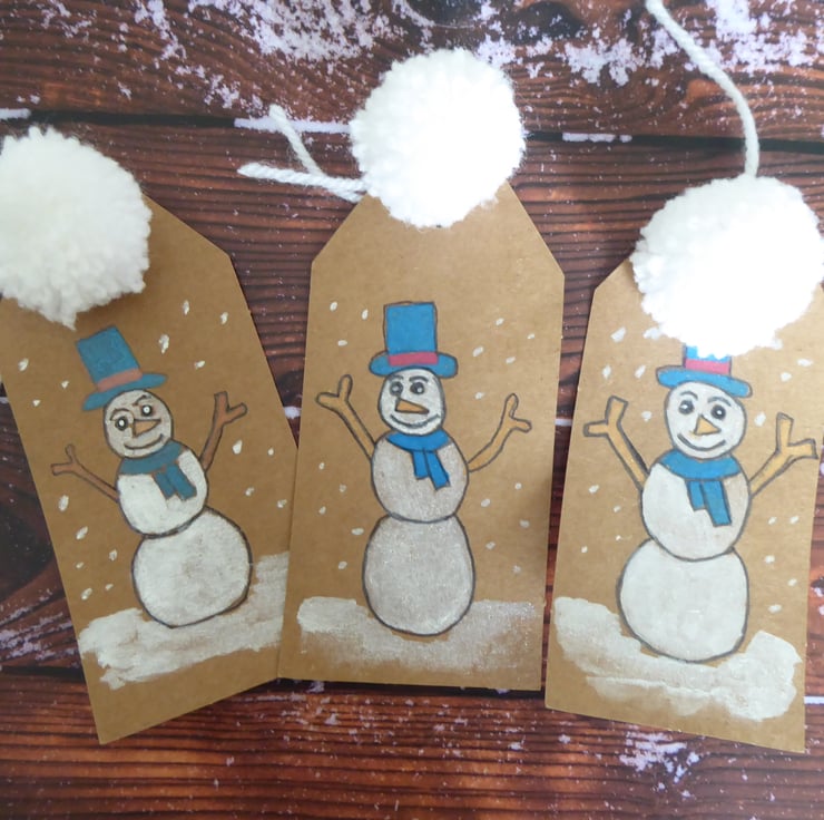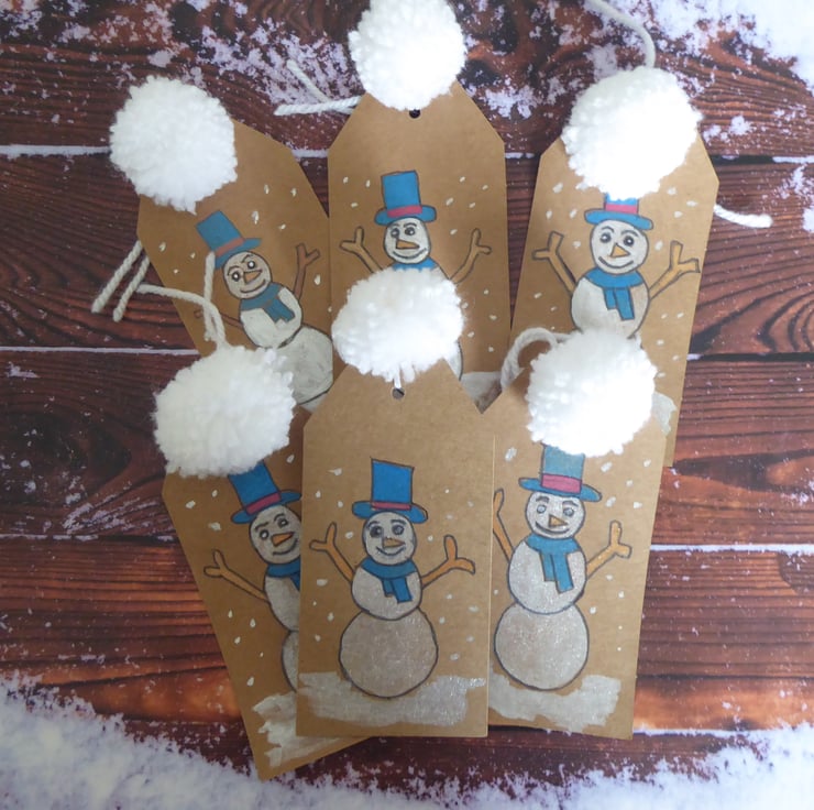 Set of 6 hand painted snowman gift tags with a beautiful metallic finish. Each gift tag has been individually hand painted using water colour paints, and finished with a handmade gift tag. A tag set to add something original to your Christmas wrapping this year.