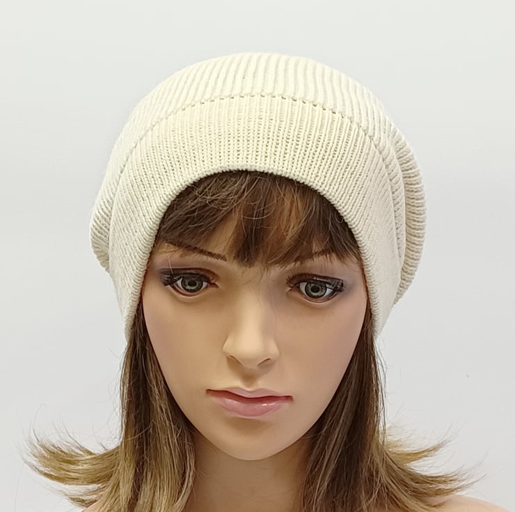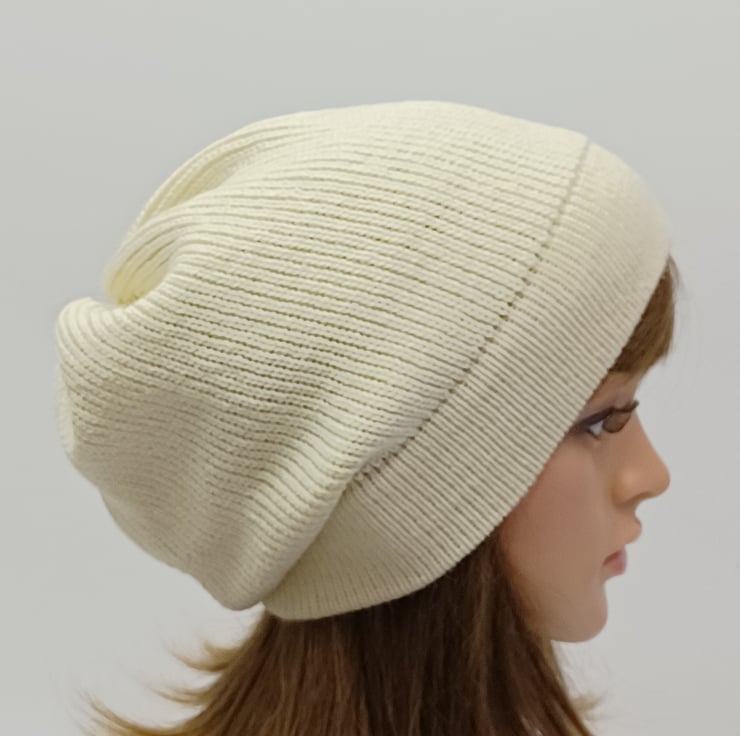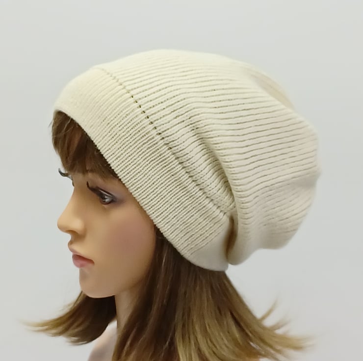 Off white beanie hat, handmade knitted alpaca blend beanie hat, slouchy beanie.