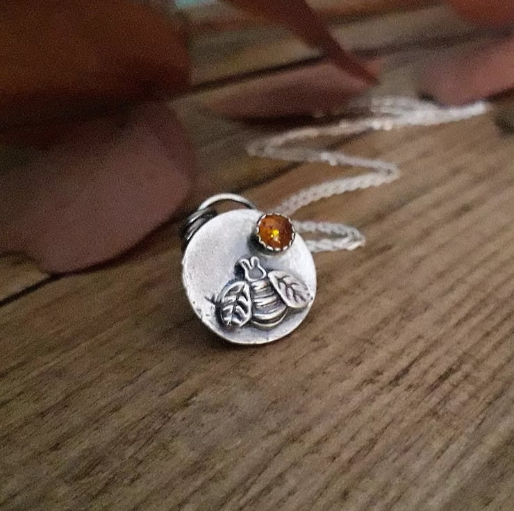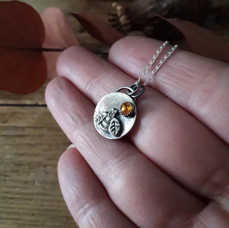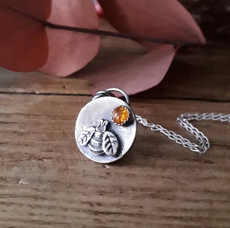 As always I have completely handcrafted this pendant with fine silver, sterling silver and a small amber stone. The silver chain is 18inch (ca. 45cm) long, the pendant is approx 0.6 inches long in total (the loop on the top included), the amber stone is 4mm big. It comes lovingly gift wrapped in a box and an organza pouch.