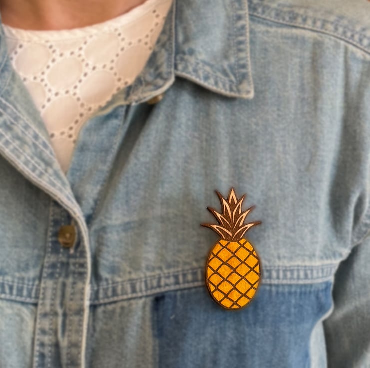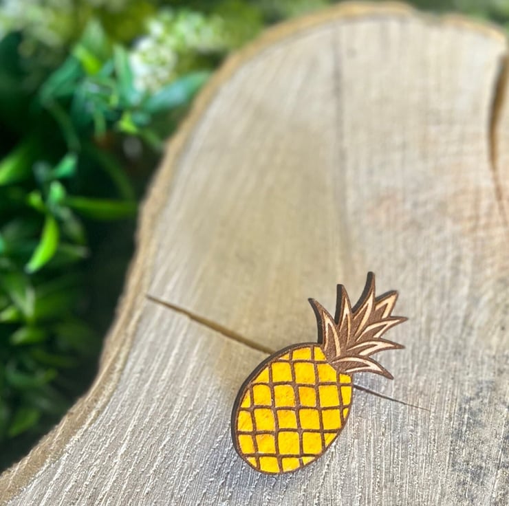Perfect gift to brighten up any outfit. Treat yourself, a friend or family member to this lovely pineapple brooch! All items are designed, hand-drawn, laser cut and made from my home studio in Yorkshire, UK.