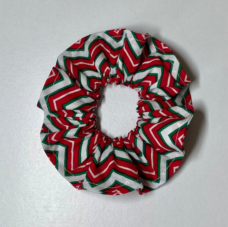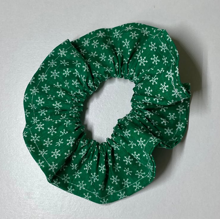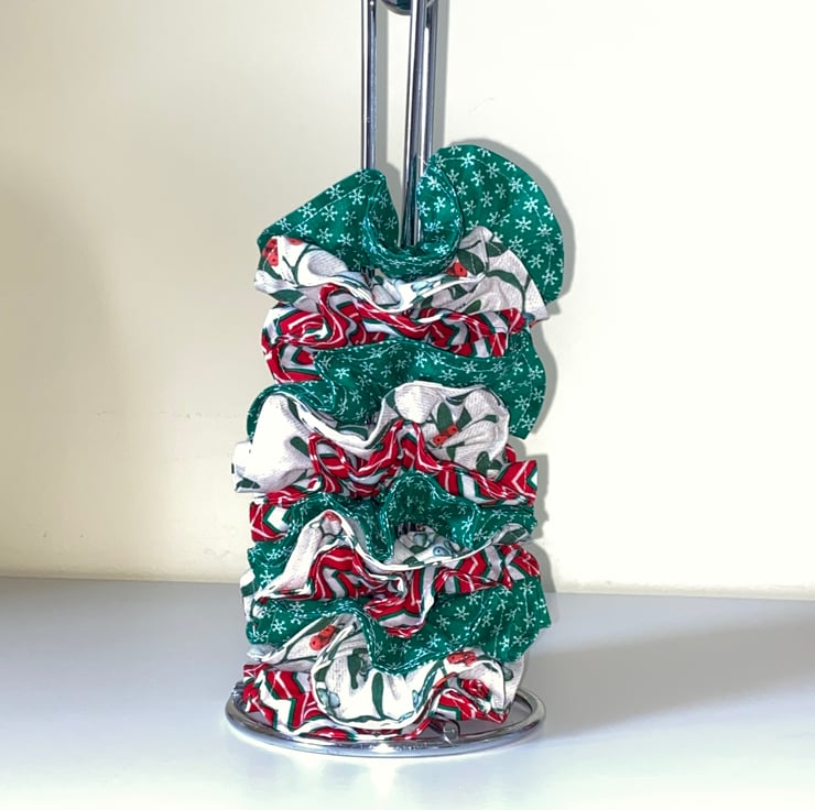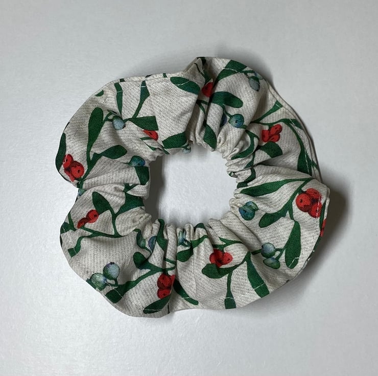 A great stocking filler or treat yourself. This is a trio of Christmas cotton scrunchies. There is a bright green scrunchie with snowflakes, a taupe one with mistletoe and one of beautiful Christmas colours.