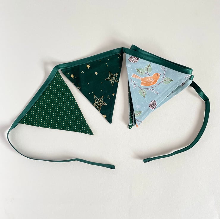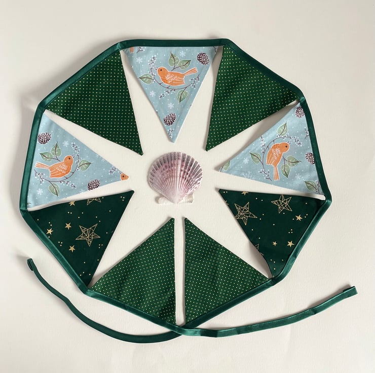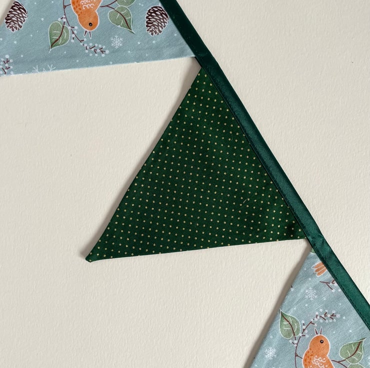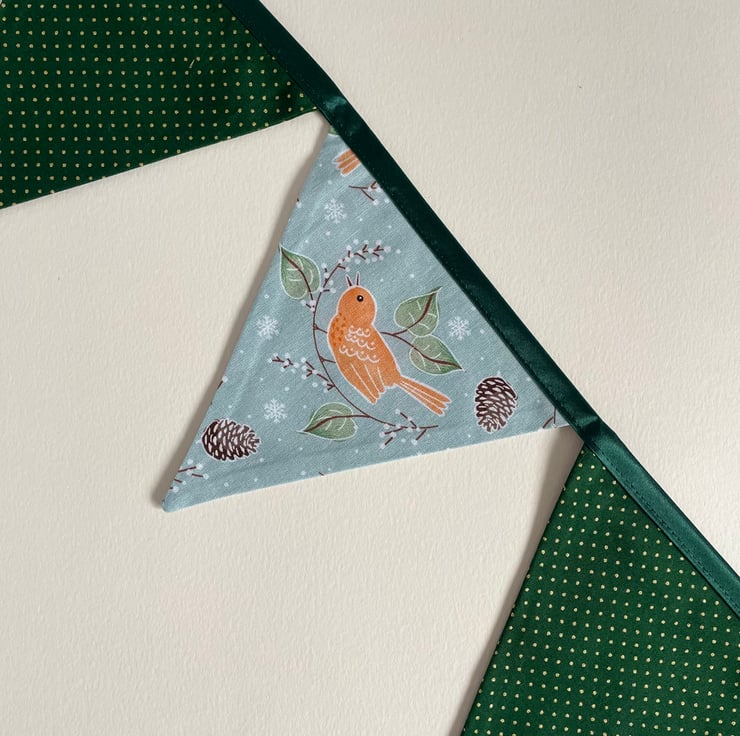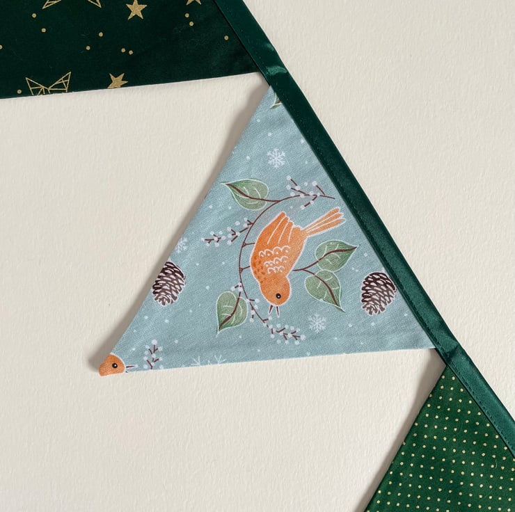 Cute Christmas bunting with birds design.181 cm long from one end to the other. 9 double sided panels.