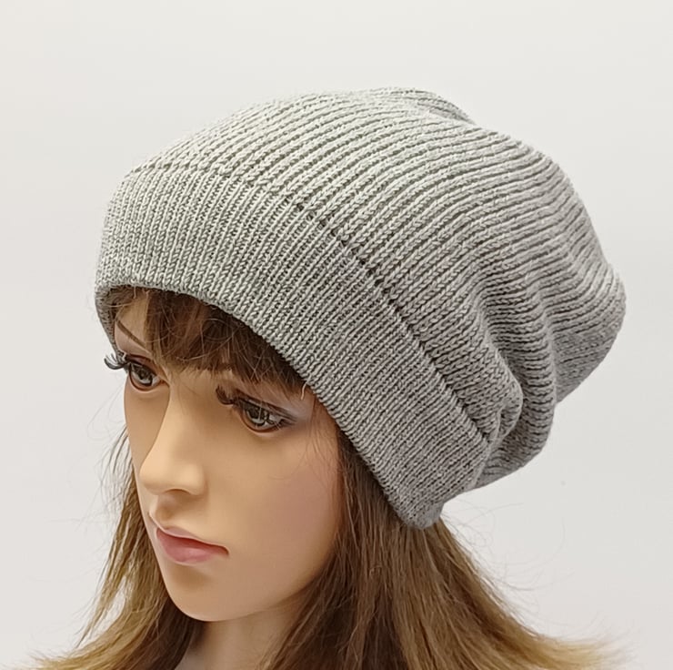 Alpaca blend slouchy beanie hat, light grey handmade baggy beanie, slouch hat.