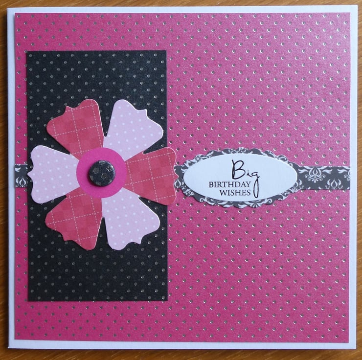 This pack of 3 unique Birthday cards has been made with a selection of papers, card flowers and embellishments in black, white, silver and shades of pink.