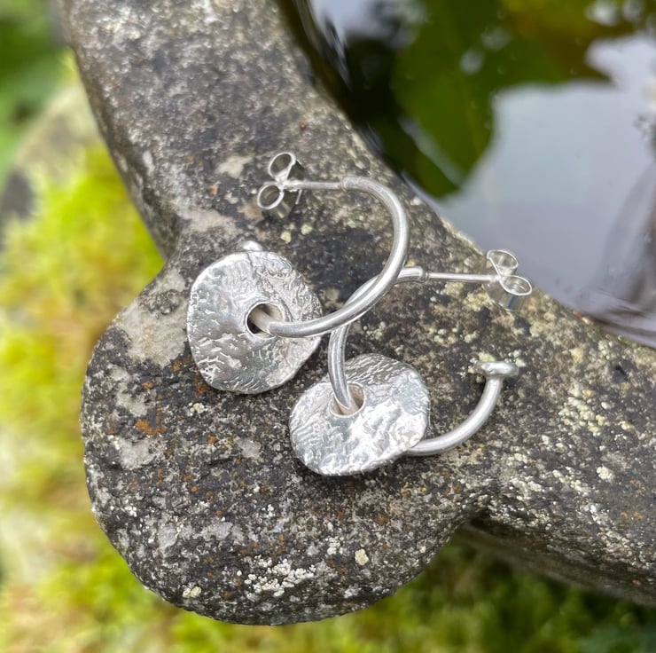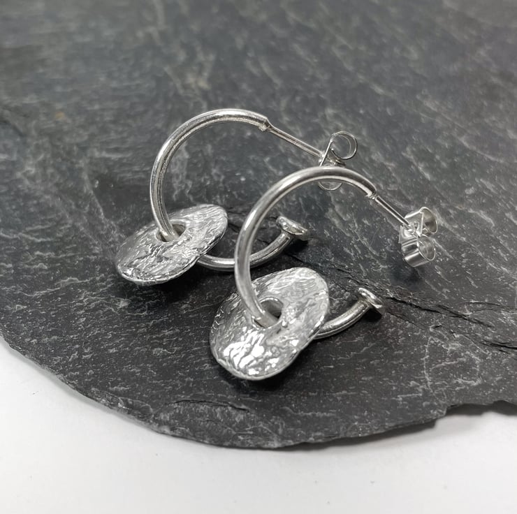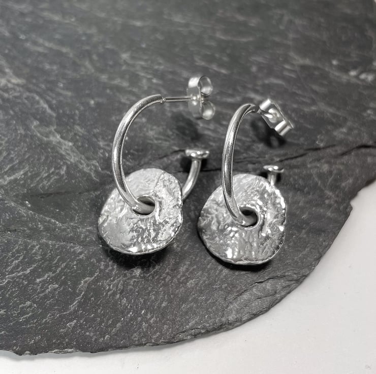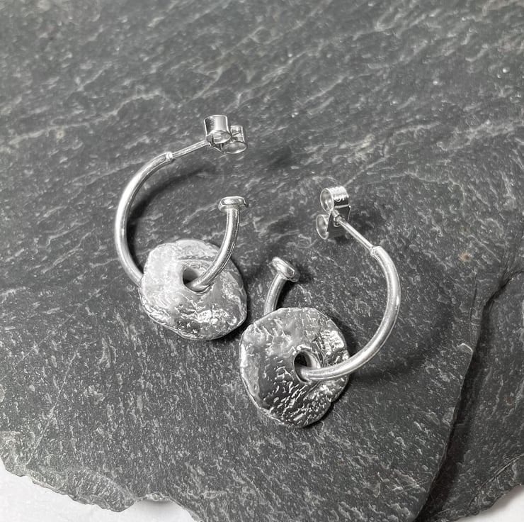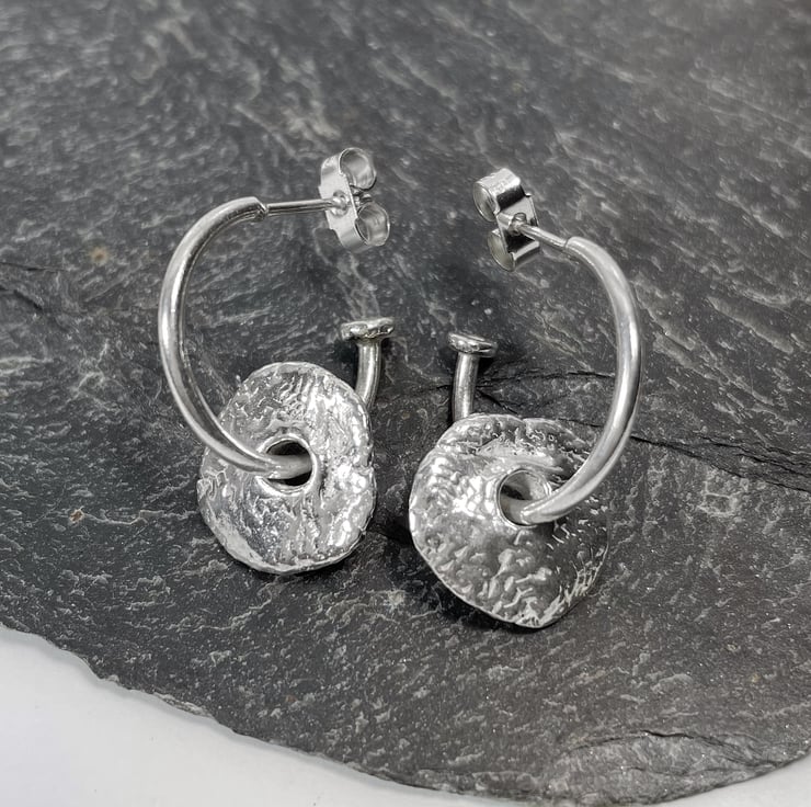 These hoops can be worn solo or with a variety of different dangles. Sold here with my beautiful rustic flat disc beads.