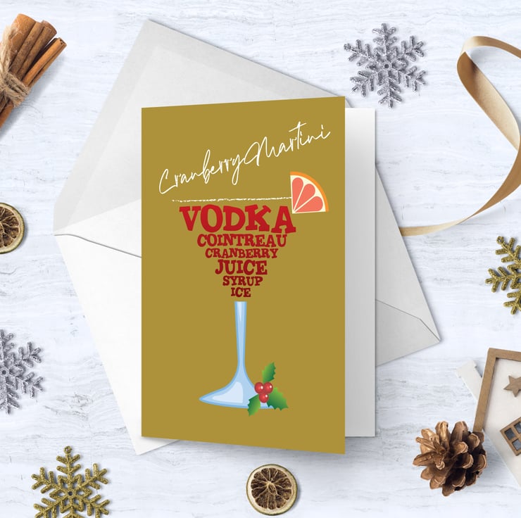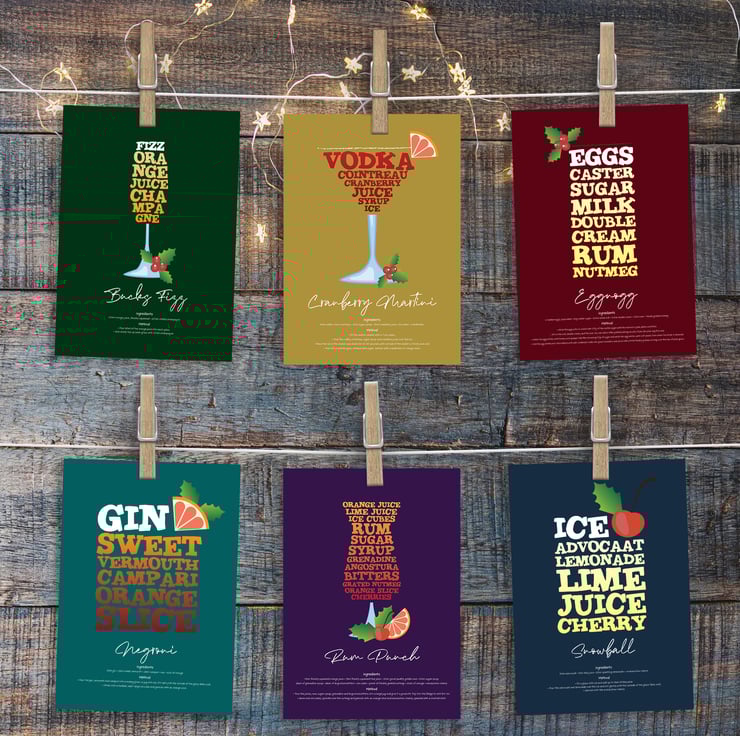Set of 6 Cocktail Themed Word Art Christmas Cards for friends, mum, sister or anyone! Perfect to keep for a birthday or occasion, or maybe you want to keep them for yourself, we are confident you will be happy with our greetings cards.