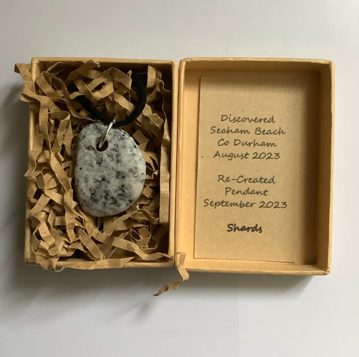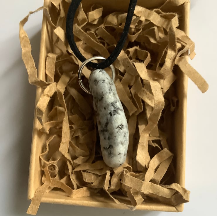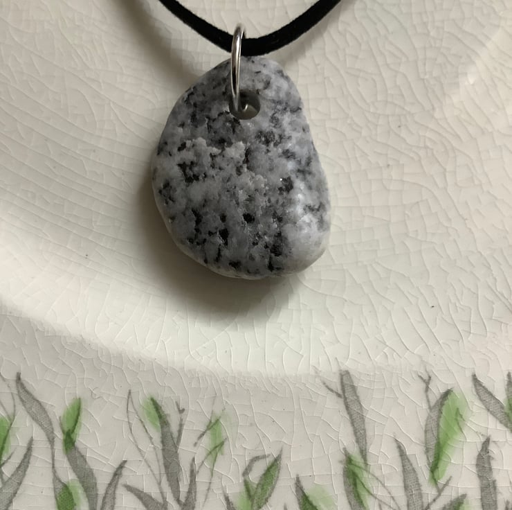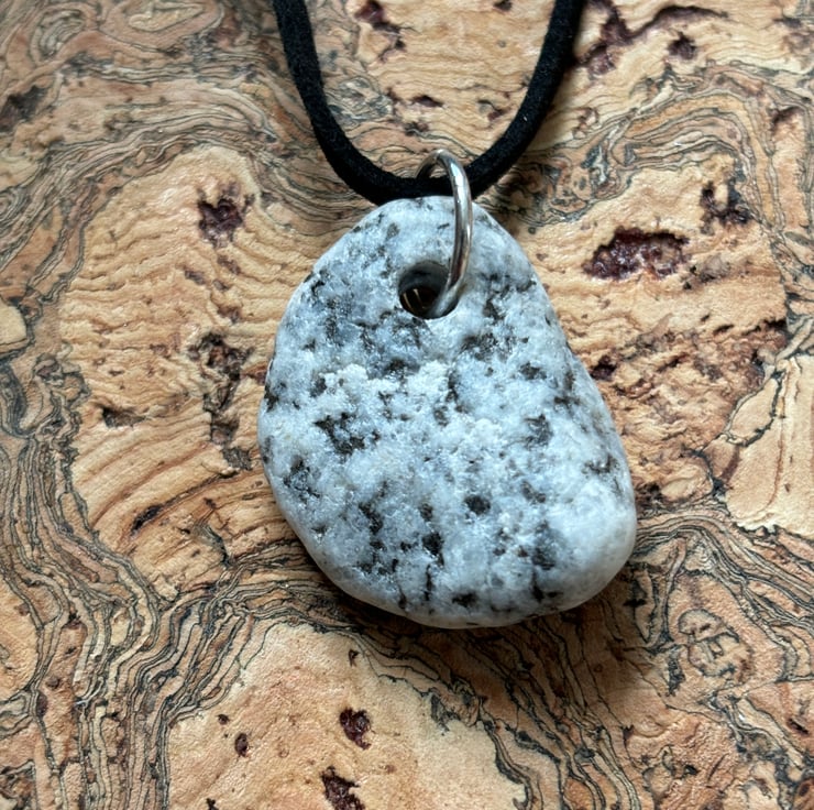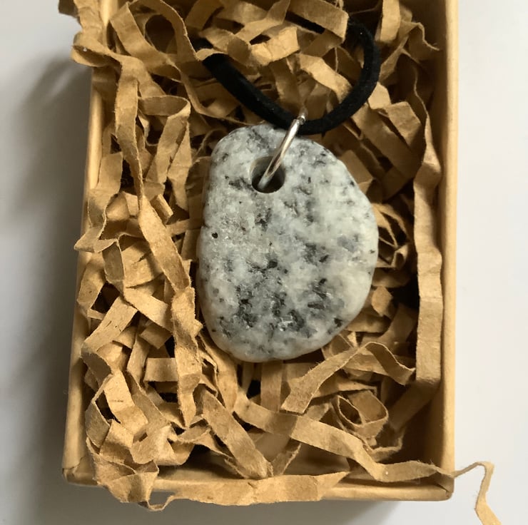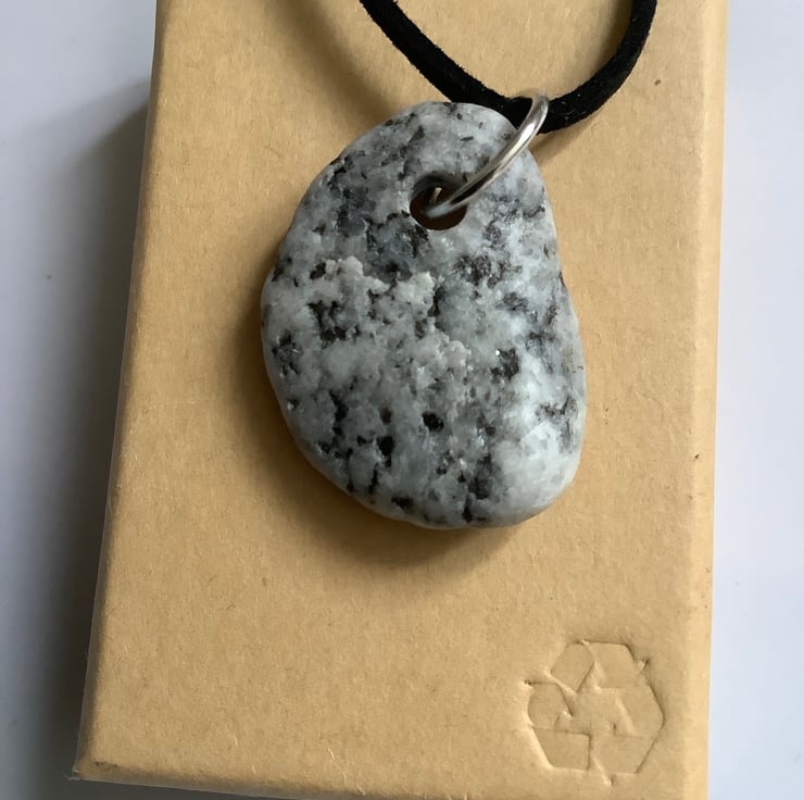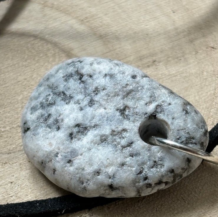 This pendant is made from a granite stone found as the waves pushed it onto the beach. Tactile, full of history. I drilled a hole and sealed with eco friendly, non toxic matt sealant.