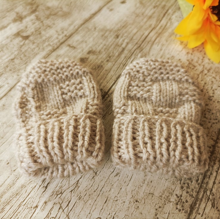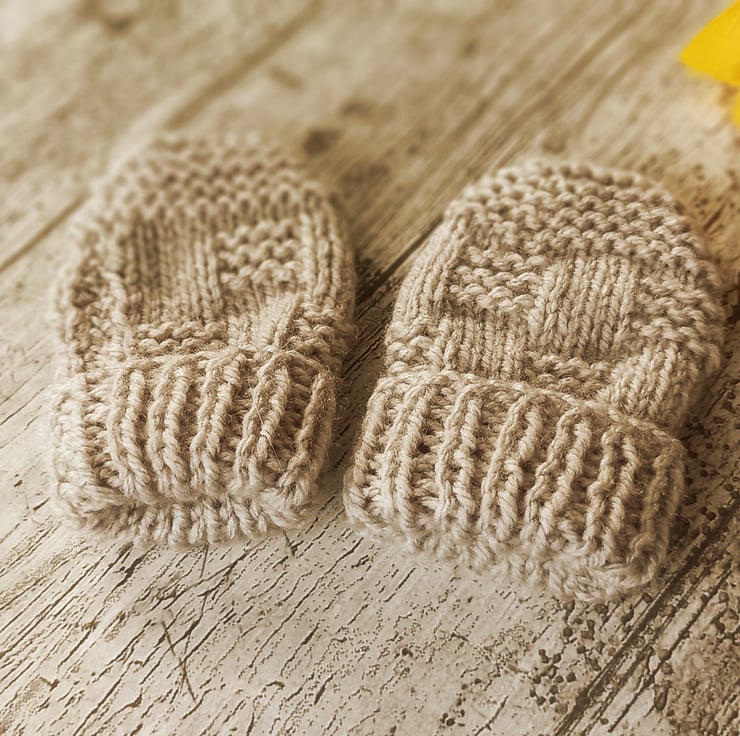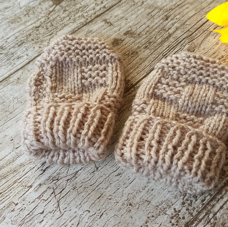 Newborn Hand-knitted mittens for newborn.