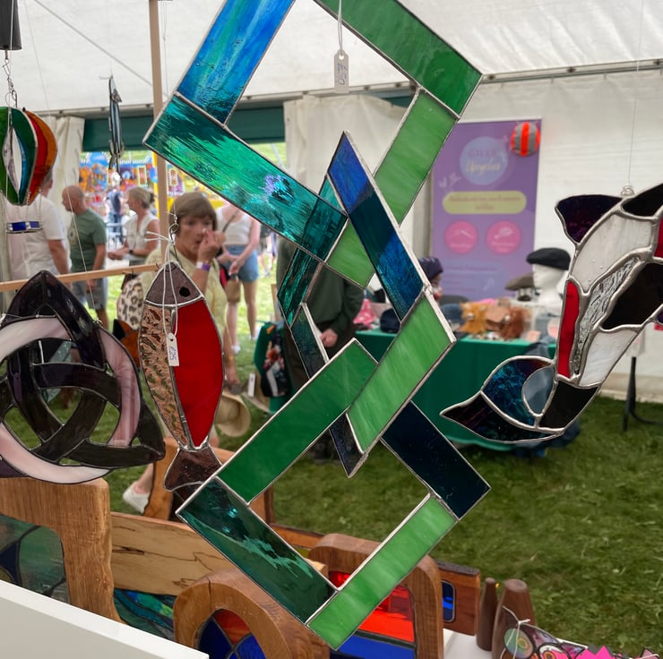 If you want to create a calming space, this stained glass spinner will do the job. Can be hung either indoors or outdoors. Let the natural breeze gently spin the interlocking squares or for indoors a simple battery operated spinner attachment will ensure you will benefit fully from the tranquil effect of this eye catching piece of glass art. It is truly hypnotising! Placed in a sunny spot and watch the added dimension of the coloured glass reflect within your room. A perfect gift or a unique statement hanging ornament for your home or garden.