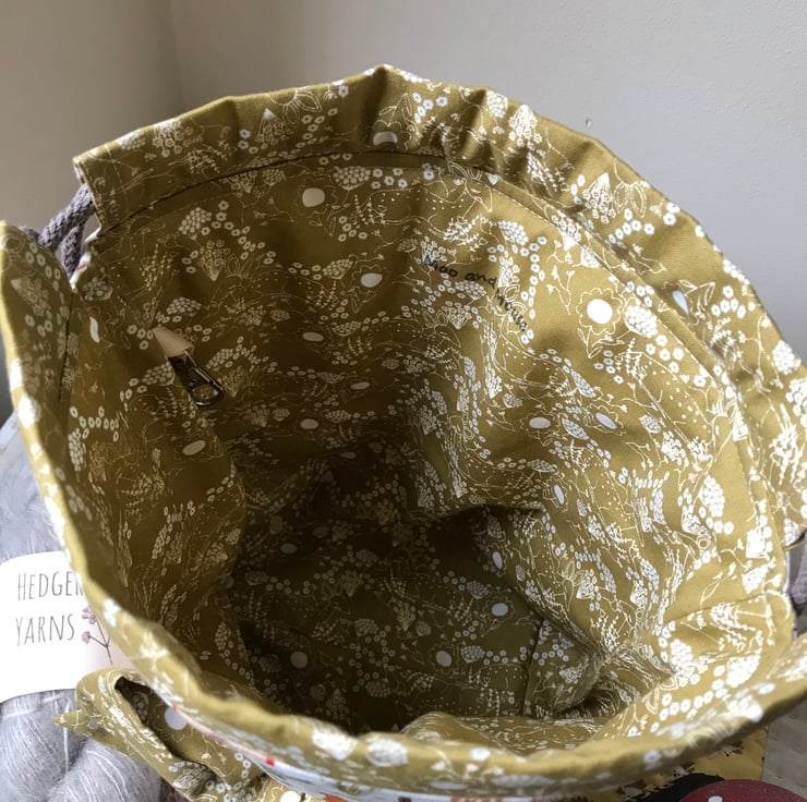 This bag is fully lined with a very pretty animal themed coordinating cotton.