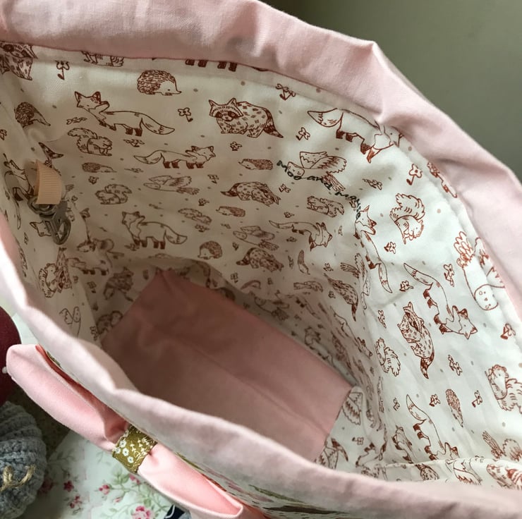 This bag is fully lined with a very pretty animal themed coordinating cotton.