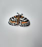 I love spotting butterflies and moths and am always drawn to the beautiful colours. This unique brooch is inspired by the beautiful magpie moth, whose caterpillars are almost as striking as the moth. My moth brooches are made almost completely of thread: I ‘draw’ onto water-soluble fabric with my sewing machine, creating an interlocking network of thousands of stitches, choosing my colours to best capture the spirit of the butterfly. The fabric is then washed away leaving a delicate looking but surprisingly tough thread butterfly. I add wire and bead antennae and a brooch back to complete my piece. Each piece I make is unique and created with care and love.