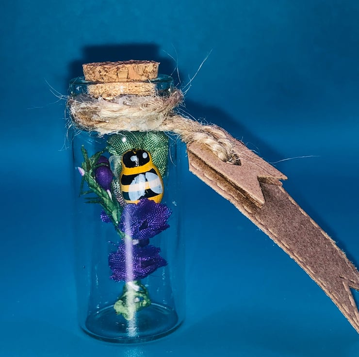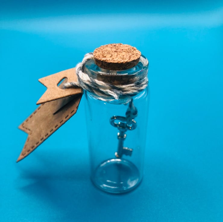 These tiny little bottles hold something special to tell someone how much you love them. There is a key for key to my heart, or flowers with a bee, and flowers with a heart. It has a little tag that you can add a couple of words on. Would make a lovely little gift for someone . They measure about 2 inches.