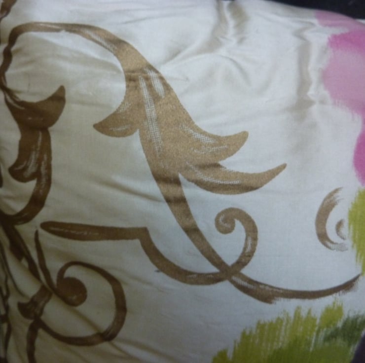 I am a fabric addict, plus love luxury fabrics and have a low boredom threshold (never make lots of cushions in the same fabric!) so when I saw this fabric it was added into my collection of delicious fabrics super fast. I had enough to make 2 cushions so when they are sold there will be no others,
