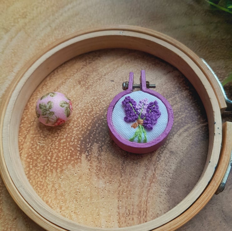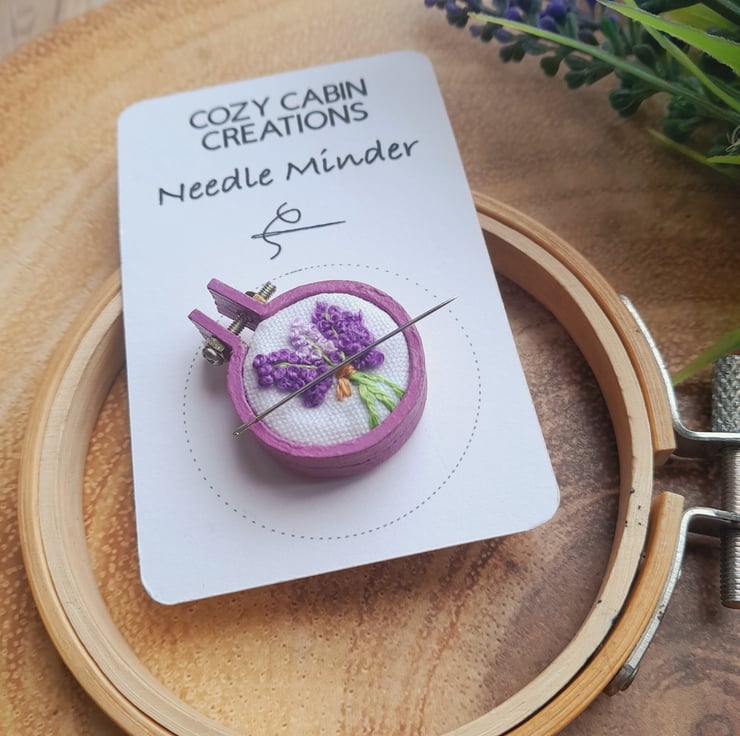 Sweet Hand embroidered Lavender mini hoop needle minder is a must have for any sewing or embroidery enthusiast.