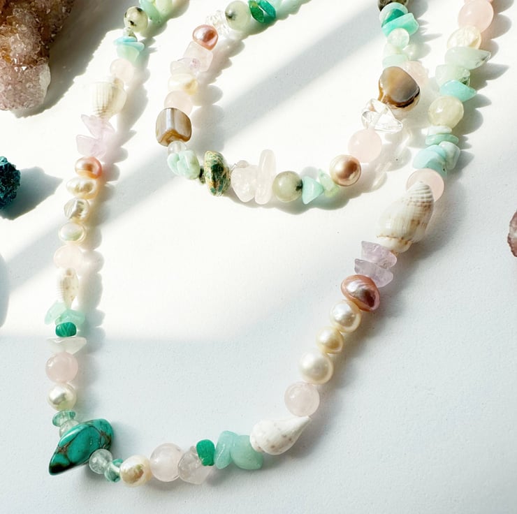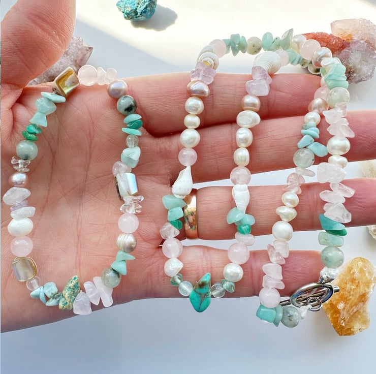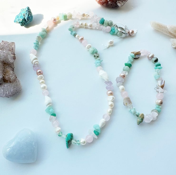 Crystal Pearl Gemstone Necklace & bracelet gift set, Larimar, Apatite,Turquoise,