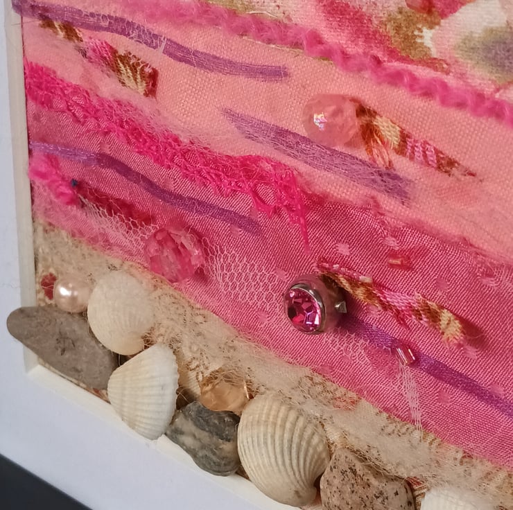 Inspired by this summer's stunning Cornish sunsets this piece in pinks brings a new look to my popular seascape collages.