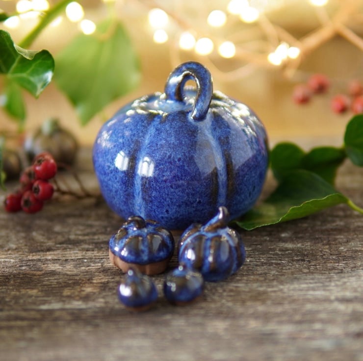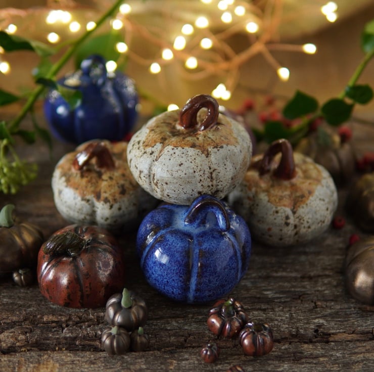 These beautiful ceramic pumpkins are thrown on the wheel and then altered to make the classic pumpkin shape.