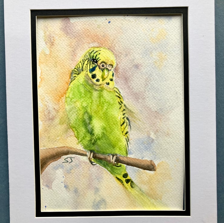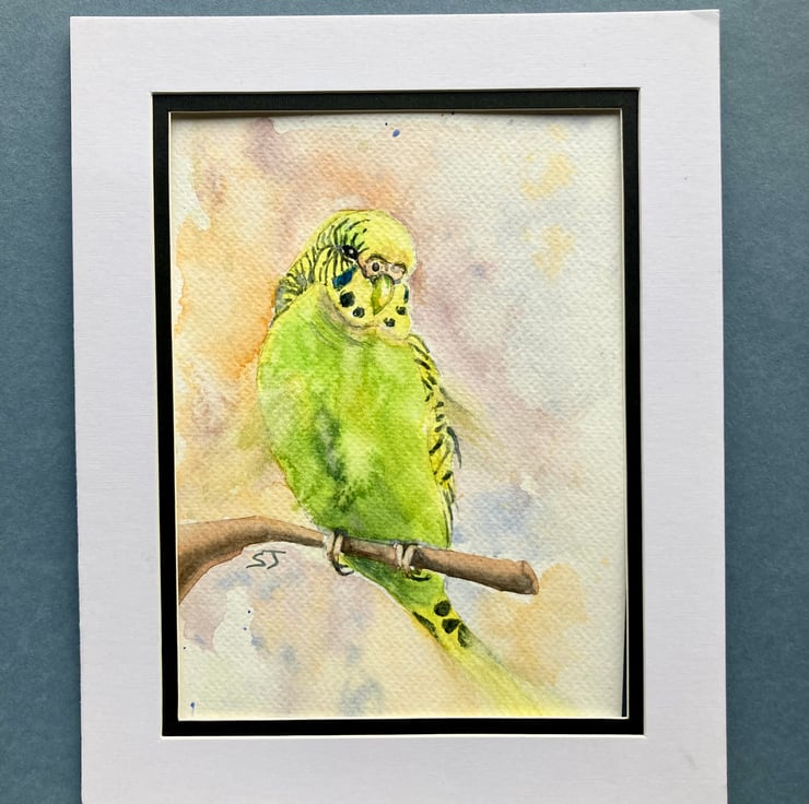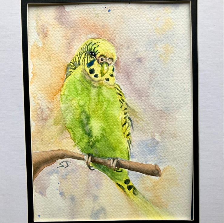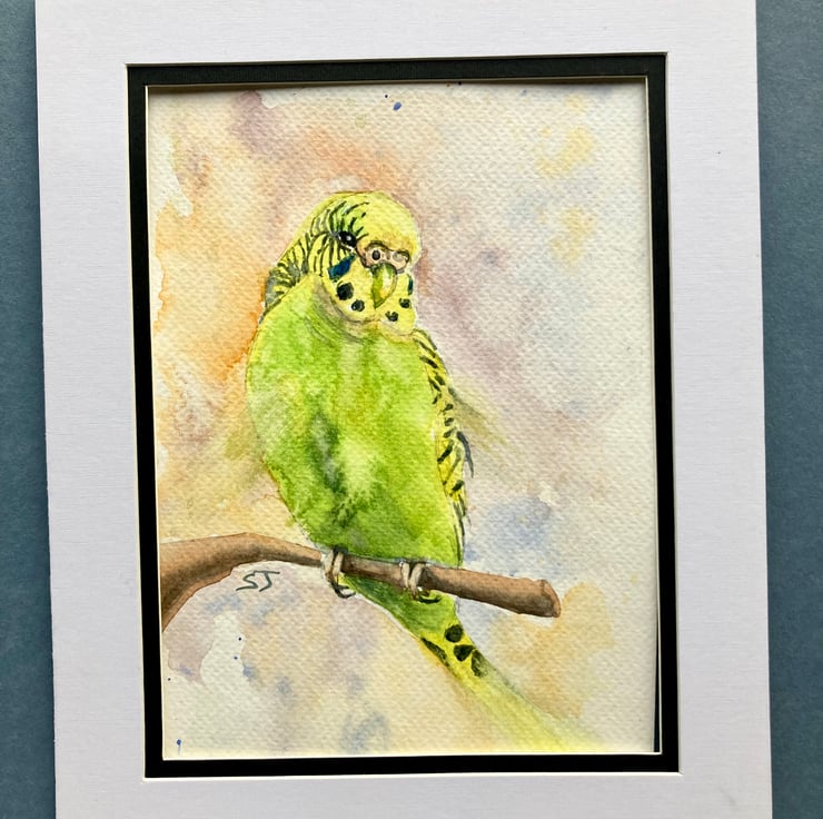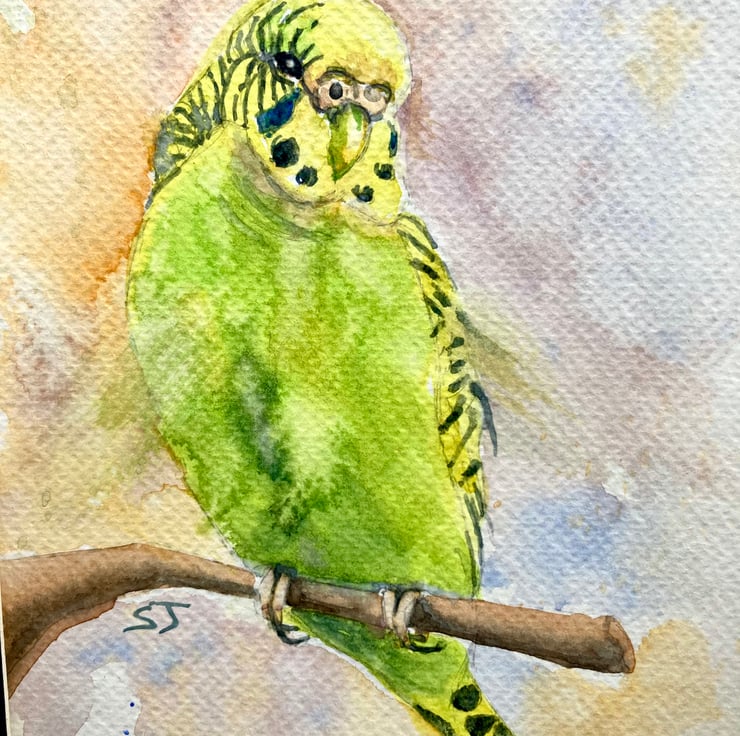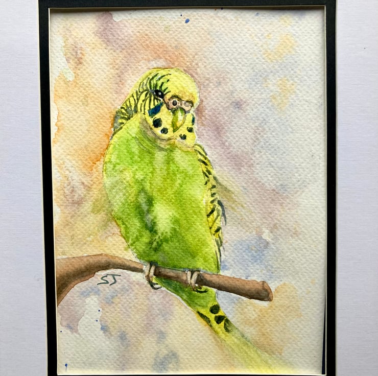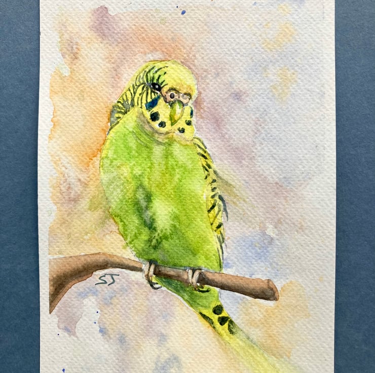 This is a fun and vibrant watercolour of a Yellow Budgie. I wanted a contrast in Colour to the Budgie for the background because the bird is so colourful to uh could clash colours so am pleased with the way it turned out!