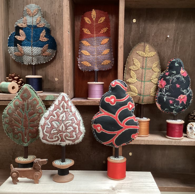 This little tree is part of a collection I have made from reproduction fabric from the 1870’s. This one is a bit surreal, proper branch design, not unlike an old pine tree!