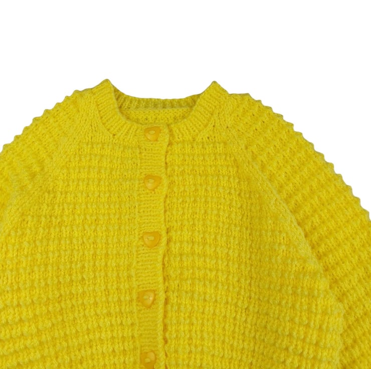 Searching for a cosy, vibrant cardigan to keep your little one warm and stylish? This delightful bright yellow cardigan is tailored to fit a 22-inch/56 cm chest, perfect for children aged 1 to 2 years. Its generous size ensures comfort, even when layered over other clothes.