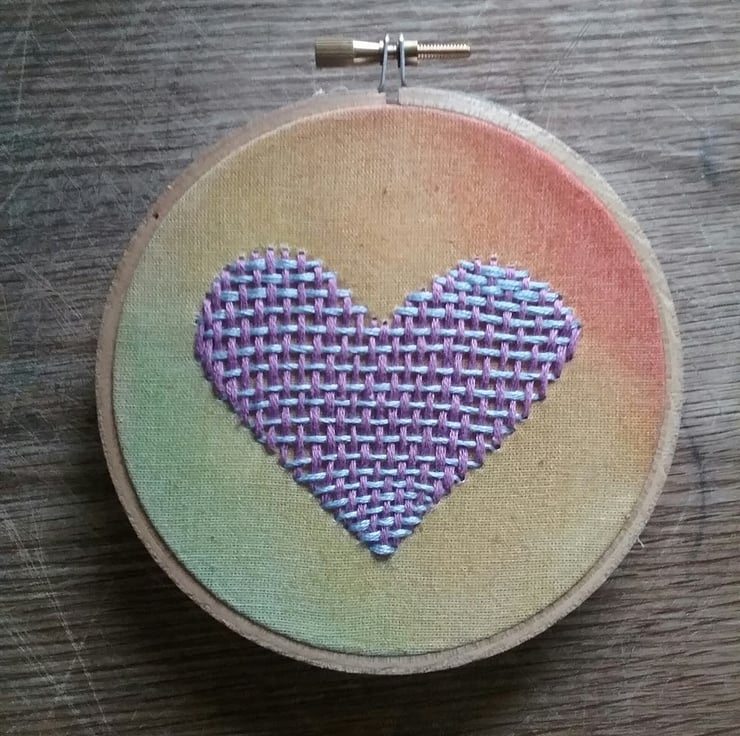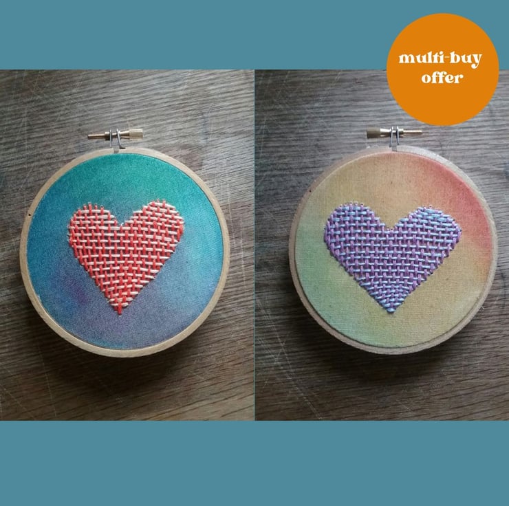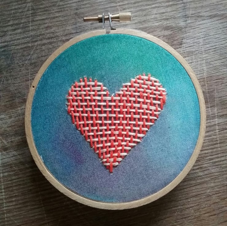 As a ready made completed hoop. Your embroidery piece has been hand stitched onto organic fabric and framed in a 4 inch bamboo hoop. It comes backed with felt and ready to display on your wall or on a shelf.